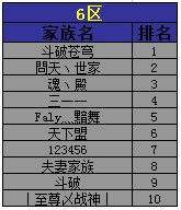 闯荡江湖,缔造传奇,您都需要强大的家族做为后盾,给予您无限的支持!或者您是天生的领袖 ,想要自立门户,打造强横势力,共同铸就斗破苍穹!陪游《斗破苍穹2》6区“有家就有一切,家族排行大赛”已经落下帷幕,恭喜以下家族进入排名前十: