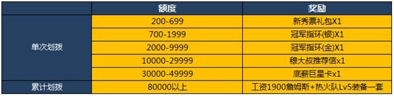 【活动内容】:活动时间内单次划拨指定金额,即可马上获得下图对应奖励,累计划拨奖励在活动结束后3个工作日内发放。