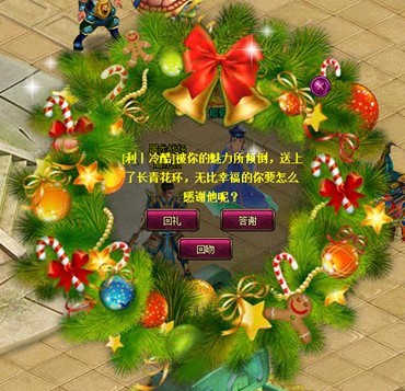 2. 被送方收到长青花环后,可以选择一种感谢方式,并获得一个圣诞礼物(金),