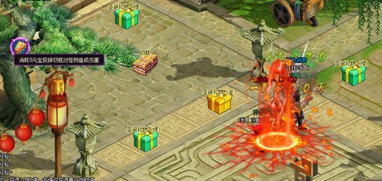 3. 在采集过程中,将会有圣诞老人和大批麋鹿怪物,赶来阻挠玩家,守卫礼物。这些怪物实力很强,但使用切糕攻击的话,将可以对他们造成大量伤害(采集副本内的切糕可以获得或直接消耗元宝使用扔切糕技能),掉落物有10秒拾取保护时间,对怪物造成最后一击的玩家拥有第一拾取权