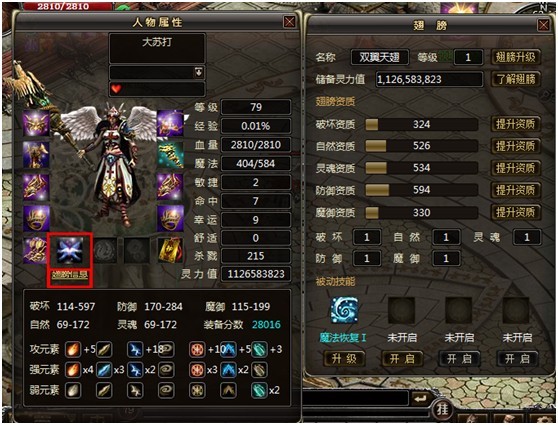 鼠标点击翅膀信息打开翅膀详细属性界面