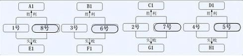 3、 每轮比赛胜利的进入到胜者组,失败的进入到败者组,然后系统进行分组安排下轮比赛。