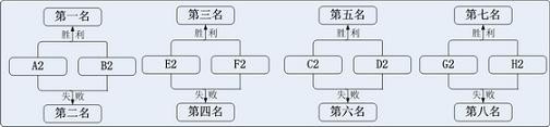 8强赛第一轮对阵图:初赛中进入8强的玩家或者队伍,按预赛和初赛的积分排出1-8名(若积分相同,则再按照神通排序。)