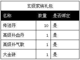 家族排行榜六至十位即每位家族成员得到“玄级家族礼包”*1;