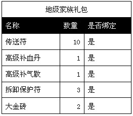 家族排行榜二至五位即每位家族成员得到“地级家族礼包”*1;