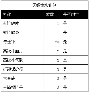 3、家族排行榜第一位即每位家族成员得到“天级家族礼包”*1;