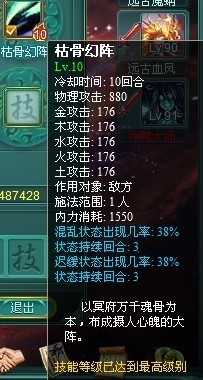 增加新高级技能“枯骨幻阵”,在60级之后的灭魂坛以及60层之上的通天塔之中掉落。具体见下图: