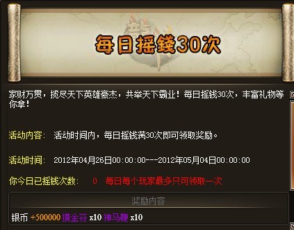 活动时间:2012年4月26日01:00:00 至 4月28日23:59:59