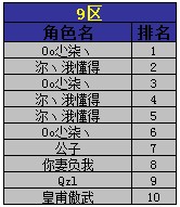 9区“家族、神兵排行榜”奖励名单