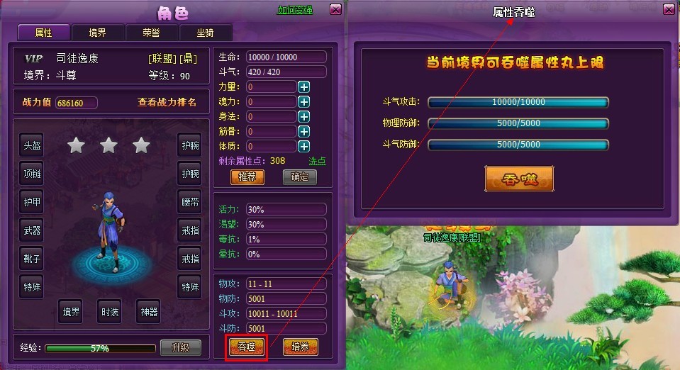 3、新增属性丸的吞噬界面,属性丸可以从金蛋---神秘商店中用经验兑换