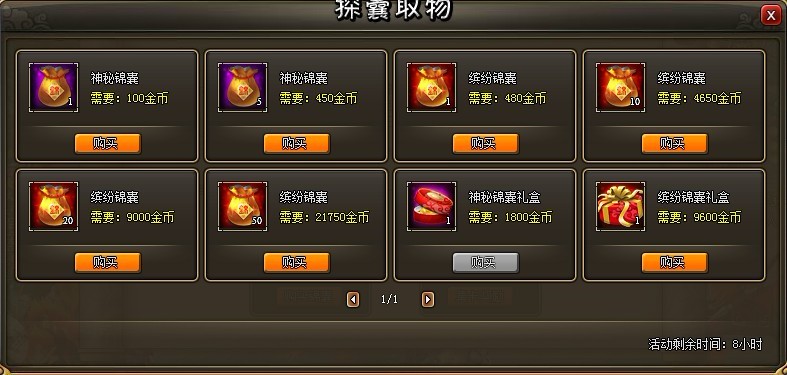 活动期间,可以通过购买锦囊获得大量珍贵道具。必须注意的是“神秘锦囊礼盒”和“缤纷锦囊礼盒”每天仅限购买一次。