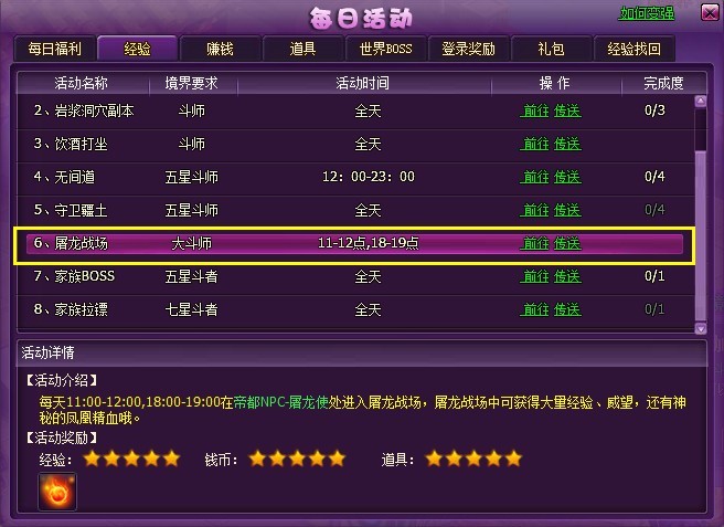 5. 活动--经验界面,增加【屠龙战场】的介绍;