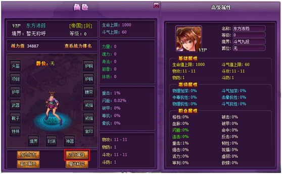 6、 修正了查看玩家界面,现在查看其它玩家可以通过“对比属性”按钮查看双方属性差别。