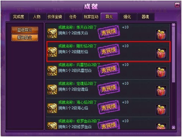 7、 新增成就界面中的随形焰成就礼包奖励;