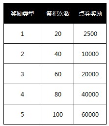 1. 祭祀到一定次数(含免费次数)即可获得点券奖励,详细见下表。