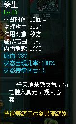 杀生——单体物理攻击,对目标造成流血效果