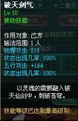 破天剑气——增加自身物理攻击力和五行攻击力