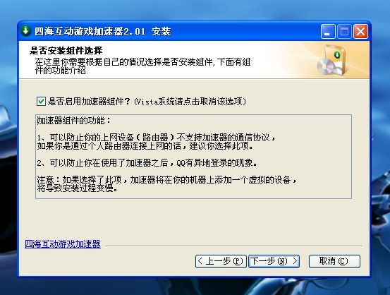 安装打开加速器选择应用服务器,点击“加速”即可。