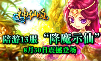 陪游神仙道开服后,异常火爆,非常多玩家涌入服务器想要体验神仙道的魅力。为了减轻服务器的压力,让玩家们有更好的游戏体验,要玩娱乐决定,在8月30日14:00开启双线13服-“降魔示仙”