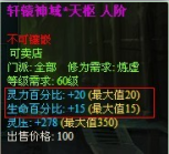 10个天罡镇魂印与15个千年灵芝可以兑换“轩辕神域包”1个,打开可以得到“轩辕神域”