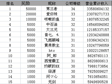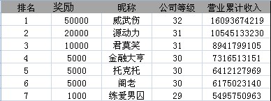 区服 名次 昵称 奖励